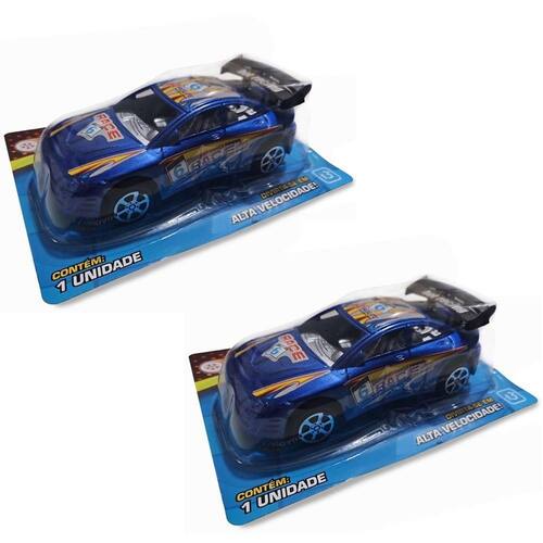 Kit 2 Carrinhos Fricção Race Infatil Carro Corrida Possantes Azul