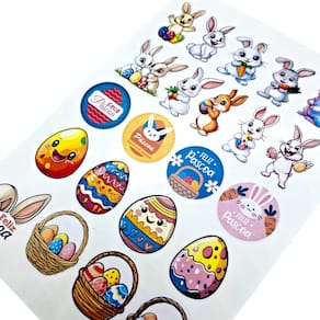 Características: - Quantidade: 44 unidades - Tamanho: 4 cm - Tema: Páscoa (coelhinhos, ovos, cesto de ovos, etc.) - Versatilidade: Ideal para personalizar presentes, cartões, embalagens e decorações - Adesivo de alta qualidade: Fácil de aplicar e fixação duradoura