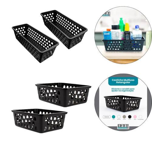Kit 2 Cesto Multiuso Comprido Retangular e 2 Cesto médio Cesto Multiuso Comprido Retangular Preto 123 Organizei Os Cestos Multiuso 123Organizei, são muito charmosos e discretos. Podem ser em armários, gavetas, guarda roupas e até mesmo em banheiro. MEDIDAS: Altura: 8,00cm Largura: 11,00cm Comprimento: 28,00cm 123organizei ------------------------------------------------------------ CESTO PRETO Médio 123ORGANIZEI Cor PRETO Medidas 20x15,5x6,5Cm Material PLástico Marca 123Organizei Marca: Não Informado Ean: 7890203462384