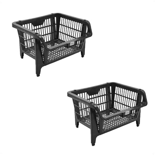 Kit 2 cestos plásticos expositores preto 44,5x20,5x35cm Kit 2 cestos plásticos expositores preto 44,5x20,5x35cm