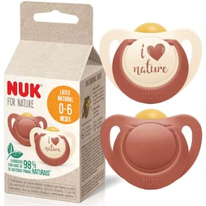 A Chupeta Nuk For Nature foi criada por profissionais especializados e é feita principalmente de matérias-primas naturais, com mais de 98% de composição. O plástico utilizado é 100% ligado a fontes renováveis e está em conformidade com a abordagem de balanceamento de massa e certificação ISCC PLUS. O bico é feito de látex natural, que é suave e flexível, e molda-se gentilmente ao rosto do bebê, contornando o rosto de forma suave de delicada. O bico anatômico Oral Fit tem um formato curvado que se ajusta ao palato da criança e uma base angular que ajuda a posicionar corretamente a língua. Essas características fazem com que a chupeta tenha uma taxa de aceitação imediata de 95% entre os bebês, tornando-a a melhor opção disponível.