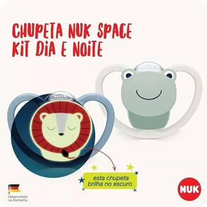 Kit 2 Chupeta Nuk Space Silicone Glow Brilha no Escuro Tamanho 1 Menino Menina 0 A 6 Meses Leão e Sapinho Recém Nascido Somos a loja Juba Baby Store, referência de mercado no segmento de produtos para bebês. Nossos anúncios são feitos com muito carinho e pensados para esclarecer todos os detalhes dos nossos produtos. Se você ainda ficar com alguma dúvida, pode entrar em contato com a gente através do campo de perguntas, iremos responder o mais rápido possível. Nossos pacotinhos são muito embalados em uma caixinha super segura para que você receba o produto em perfeito estado. Kit com 2 chupetas nuk space silicone tamanho 1. Recomendado para bebês de 0 a 6 meses. Está com dificuldades para encontrar a chupeta certa para o seu bebê As novas chupetas NUK Space têm um escudo revolucionário que possui aberturas muito grandes, permitindo o fluxo de ar máximo e permitindo que a pele suave do bebê respire. Como todas as chupetas NUK, o NUK Space é aceito por 95% dos bebês e apresenta o formato mamilar aprimorado. O mamilo assimétrico da NUK se ajusta naturalmente ao paladar do bebê e agora é aprimorado para permitir mais espaço para um movimento de sucção natural, reduzir a pressão nos dentes e na mandíbula e ajudar a evitar o desalinhamento dos dentes. Inventada há mais de 60 anos por dentistas e médicos pediátricos, a chupeta NUK é modelada segundo o formato natural do mamilo da mãe durante a amamentação. Isso facilita a transição do seio para a chupeta e vice-versa. O escudo em forma de coração NUK no NUK Space se encaixa perfeitamente sob o nariz do bebê para facilitar a respiração e evita irritações. Agora, todas as chupetas NUK estão disponíveis em um estojo de armazenamento reutilizável que facilita a limpeza no microondas. CONTEÚDO DA EMBALAGEM: 01 Chupeta Nuk Space com desenho de Leãozinho 01 Chupeta Nuk Space com desenho de Sapinho 01 Estojo esterilizador Este produto é certificado pelo INMETRO: CE-PUR/IQB-000612 - NBR 10334 - OCP 0006 O Ministério da Saúde adverte: A criança que mama no peito não necessita de mamadeira, bico ou chupeta. O uso de mamadeira, bico ou chupeta prejudica o aleitamento materno. Ean: 7896098814819