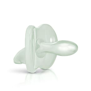 O bico permite o uso da chupeta dos dois lados. A chupeta dia não possui o efeito glow, no entanto, sua cor é delicada.