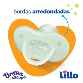 O Kit com 2 Chupetas 100% Silicone Soft Calming Bico Simétrico Lillo foi projetada em peça única, 100% Silicone macio e flexível, com bordas arredondadas e alça integrada que permite o uso de prendedores para evitar a perda.