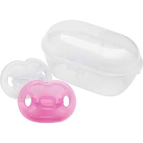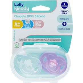 Kit 2 Chupetas - Silicone - 6m - Rosa - Lolly Kinddy: A Chupeta 100% Silicone da Lolly Kinddy possui design moderno e pensado no bem estar do bebê. Seu disco curvado reduz o contato com a pele sem deixar marcas e seus furos de ventilação melhoram a circulação de ar, proporcionando um máximo conforto. Detalhes: • Bico achatado de ponta macia • Produto totalmente atóxico • Possui furos de ventilação para não irritar a pele sensível do bebê • Super resistente Informações: • Produto: Kit 2 Chupetas 100% Silicone +6m • Marca: Lolly • Coleção: Kinddy • Tipo: Chupeta com bico achatado • Categoria: Bem-Estar do Bebê • Subcategoria: Chupetas e Acessórios • Tamanho (C x A x L): 05 x 3,5 x 05 cm • Conteúdo: - 01 Chupeta transparente - 01 Chupeta rosa - 01 Estojo para transporte • Recomendação: para bebês a partir de 06 meses de idade Especificações: • Modelo: Chupeta Lolly Kinddy +6 meses • Referência: 601502F • Código de Barras: 7896699031660 • Embalagem (C x A x L): 10,5 x 15 x 5 cm • Embalagem (Peso): 0.048 kg • Material / Composição: - Bico: silicone - Disco e botão: Plástico • Registro: CE-PUR/IQB 0114 NBR 10334 • Certificado: Órgãos Autorizados - OCP´S (Organismos de Certificação de Produtos) Aviso: • As imagens são meramente ilustrativas • Os pesos, tamanhos e medidas são aproximados • As cores e estampas dos produtos podem ter variações • As informações são de responsabilidade do fabricante ou fornecedor