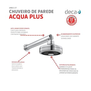 Chuveiro com design e tecnologia exclusivos. O Acqua Plus é excelente opção para baixa e alta pressão; fornecendo um banho extremamente confortável. Possui sistema de auto limpeza; sendo ativado sempre que a água for fechada.