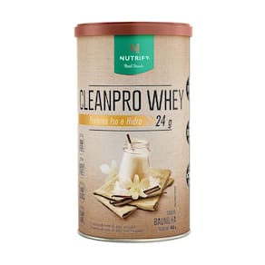 Kit 2 clean pro whey hidrolisado baunilha nutrify 450g Benefícios: aumento da massa muscular e longevidade. Uma suplementação proteica leve, de fácil digestibilidade e livre de compostos artificiais. Cleanpro whey nutrify oferece a proteína de soro do leite isolada e proteína de soro do leite hidrolisada. Rico em aminoácidos essenciais, origina uma fórmula capaz de ofertar 5 g de bcaa por dose. Na origem da matéria-prima, whey protein proveniente de gado alimentado somente com pasto grass-fed . Cleanpro whey nutrify utiliza estévia e taumatina, adoçantes 100% oriundos de fontes naturais. Nutrify valoriza a origem de cada ingrediente, respeita a integridade de suas fontes naturais e dos envolvidos em sua produção. É assim que criamos produtos saudáveis e saborosos, que fazem bem para as pessoas e para o planeta. Acreditamos que nutrir corpo e mente de modo saudável nos torna capazes de alimentar o mundo com atitudes positivas. Ingredientes: proteína de soro do leite isolada, proteína de soro do leite hidrolisada, aromatizante natural e edulcorantes naturais estévia e taumatina. Alérgicos: contém derivados de leite e soja. Ingrediente utilizado no processo de fabricação da proteína do soro de leite com função de instantaneização. Não contém glúten. Contém lactose. Contém aromatizante. Apresentação: embalagem disponível: lata contendo suplemento em pó. Sabor baunilha. Peso líquido: 450 g produto classificado como: suplemento alimentar de proteínas em pó sabor de baunilha. Conservação: conservar este produto ao abrigo de luz, calor e umidade, antes e após o primeiro consumo. Marca: Não Informado