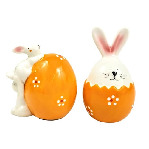 Kit 2 Coelho De Páscoa De Porcelana Ovo Decorativo Kit com Dois Ovos de Páscoa de Porcelana com Coelho Decorativo - Charme e Elegância para Sua Decoração de Páscoa