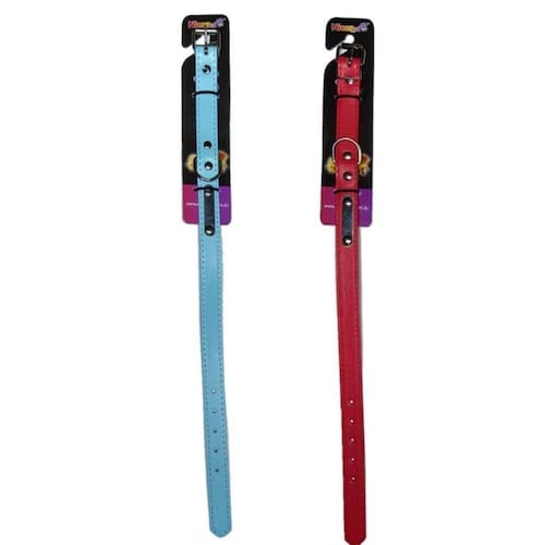 Kit 2 Coleiras material sintético Para Cachorros - Placa De Identificação 2 coleiras de material sintético com placa de identificação. - coleira no material sintético; - confortável e muito estilosa; - ótima para deixar seu pet ainda mais charmoso; - para todos os tipos de animais e tamanhos; - resistente e com um ótimo material; - com plaquinha de identificação; - cores: vermelho e azul claro; Medidas: M - 44 cm de comprimento x 2 cm de largura; Marca: Nicapet Ean: 7777173298826