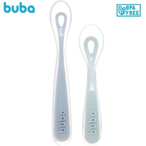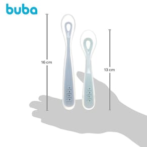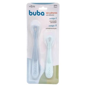 Kit Colheres 2 Estágios da Buba possui uma colher para a introdução alimentar com cabo longo ideal para ser manuseado pelo adulto para alimentar o bebê, e a outra para a autoalimentação, com cabo ergonômico, adequada para as mãozinhas do pequeno, desenvolvendo a sua coordenação motora e autoconfiança. Ambas possuem a ponta macia em silicone suave, perfeita para gengivas delicadas.
