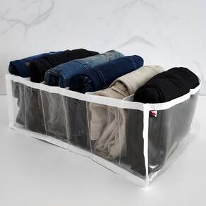Organize seu guarda-roupa com o kit de 2 colmeias organizadoras para calças, cada uma com 6 divisórias práticas. Ideal para gavetas, armários ou closets, mantém suas calças dobradas, visíveis e acessíveis. feitas de material durável e respirável, evitam amassados e facilitam a rotina. O design compacto otimiza espaço, enquanto as divisórias mantêm tudo no lugar. Perfeitas para jeans, leggings e até roupas de academia, essas colmeias trazem praticidade e estilo para seu dia a dia. Organização nunca foi tão simples e funcional!