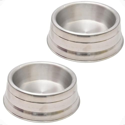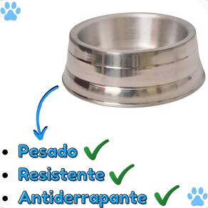 O comedouro enferruja Não ele é antioxidante, de modo a não prejudicar a alimentação do seu cão. No entanto, a longo prazo, conforme o desgate do material, recomendamos a reposição do produto por um novo. Posso colocar água no comedouro Sim o comedouro pesado polido de alumínio serve tanto para colocar rações quanto água. Posso usar para gatos Sim nada impede que o seu uso seja destinado para gatos também, porém o comedouro é grande para gatos. Medidas aproximadas: Tamanho: g Peso: 3500 gramas Altura: 8 cm Largura: 27 cm Comprimento: 27 cm Volume: 1900 ml Recomendações de tamanho pelo porte do cão: Porte do cão: grande porte Medida: 60 cm Peso: 25 kg Tamanho recomendado: g O seu cão empurra o comedouro de um lado para o outro toda vez que se alimenta Acabe com este problema de forma simples Independente da raça e do porte, a hora de se alimentar é a favorita para todos os cães muitas vezes eles são tão enérgicos e alegres que acabam empurrando comedouros leves para todos os lados, ás vezes até virando o comedouro de ponta cabeça e esparramando a ração por todo o chão... É uma situação desconfortável tanto para o cão quanto para o dono a , não é mesmo O comedouro pesado polido de alumínio é a solução mais simples e utilizada por donos a de cães para acabar com este problema por ser de metal, o seu peso proporciona uma capacidade de fixação e antideslizante muito maior que comedouros tradicionais de plásticos Tudo isso para melhorar a alimentação do seu cãopanheiro Benefícios do kit 2 comedouros pesados polido de alumínio: Antideslizante. Resistente. Maior durabilidade que comedouros de plástico. Antioxidante. Mais confortável para alimentação de cães independente do porte. Fácil de limpar. Utilizável tanto para rações quanto água. Informações técnicas: Produto: comedouro pesado polido de alumínio Marca: petliz Tipo: comedouro e bebedouro Animal: cachorros Porte: médio e grande Raça específica: não Sexo específico: não Itens inclusos: 2 comedouro pesado polido de alumínio g Material: alumínio do vendedor: 7 dias Marca: Não Informado