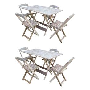 Kit 2 Conjuntos De Mesa Com 4 Cadeiras De Madeira Dobravel 120x70 Sem Pintura/Crua