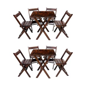 AS IMAGENS SÃO MERAMENTE ILUSTRATIVAS E PODEM SOFRER VARIAÇÕES DE COR E PEQUENOS DETALHES DE ACORDO COM O SEU MONITOR, ILUMINAÇÃO DO AMBIENTE E ATÉ MESMO A SUA PERCEPÇÃO VISUAL.Kit 2 Conjuntos De Mesa DobrÃvel 60x60cm Com 4 Cadeiras Em Madeira MaciÃa - Imbuia