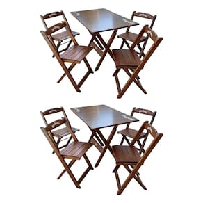 Kit 2 Conjuntos Mesa Dobrável Madeira 110x70 com 4 Cadeiras Personalizada Jack Imbuia - Tarimatã - Marrom