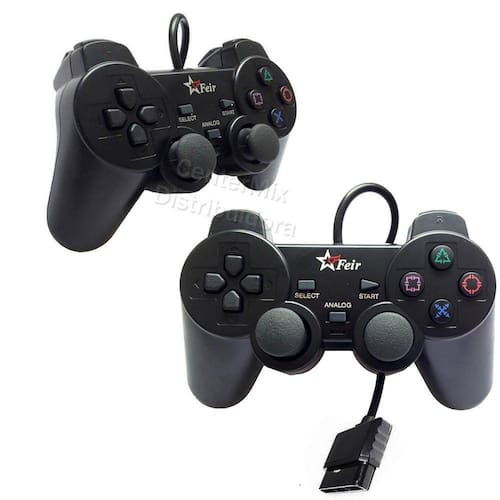 Kit 2 Controle Joystick Game Ps1 Ps2 Play 2 Com Fio Vibração