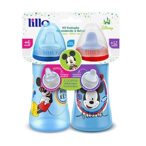 Kit 2 Copos Colors Bico De Silicone Disney Mickey Azul Lillo