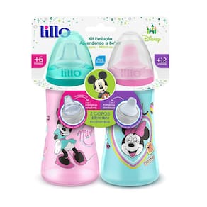 Kit 2 Copos Colors Bico De Silicone Disney Minnie Rosa Lillo