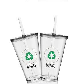 Kit eco com copos com tampa e canudo eco personalizados para ajudar o meio ambiente. Adote o seu copo e evite descartáveis. Juntos somos mais fortes. Confira as opções de copos, taças e canecas ecológicas personalizadas. Especificações: Material: Acrílico PS Altura: 14,5 cm Diâmetro: 9,5 cm Capacidade: 550 ml Cor: Transparente Quantidade: 2 peças Ean: 7897581915327
