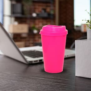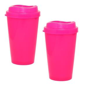Kit 2 Copos Mug Rosa Neon 320Ml Plástico Premium - Copo Mug Plástico Premium