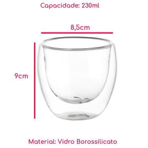 Características: Altura: 9cm Diâmetro: 8,5cm Capacidade: 230ml Material: Vidro Borossilicato Marca: Class Home Conteúdo: 2 Copos