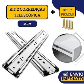 Kit 2 Corrediças Gaveta Telescópica Light 45cm Com Parafusos A nossa corrediça telescópica é a solução perfeita para quem busca funcionalidade e eficiência em móveis e espaços de armazenamento. Fabricada com materiais de alta qualidade, ela garante um deslizamento suave e silencioso.