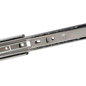 a corrediça telescópica pesada é indicada para gavetas de cozinhas, closets, quartos, banheiros, lavanderias, prateleiras retráteis/extensíveis, bases de teclado e mobiliário em geral. - marca: xf - referência: v19960 - acompanha 2 corrediças 1 par - comprimento: 300mm 12 polegadas - largura: 35mm - mais larga que as padrão de mercado que possui 30mm - capacidade de carga do par: 25kg - suporta mais carga que as padrão de mercado que suportam 20kg - espessura: 11,7mm - para uso geral - possibilita a abertura total da gaveta com deslizamento suave, preciso e resistente - corpo em aço galvanizado - deslizamento através de de aço - tipo: telescópica - não acompanha parafusos para fixação na gaveta - sua estrutura é composta por de aço e possuem três peças: :: uma maior que fica presa ao móvel, na parte lateral onde a gaveta será instalada. :: uma intermediária que corre dentro do trilho preso à mobília. :: um menor que é fixado na lateral da gaveta - a corrediça telescópica possui um excelente ganho na abertura, já que a gaveta pode ser puxada por completo, sem correr o risco de sair ou provocar danos ao móvel - peso bruto: 375 gramas o par - garantia: 90 dias Marca: XF