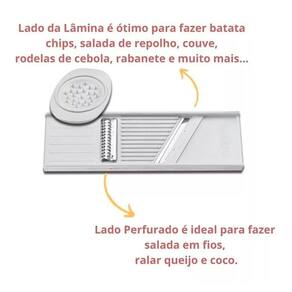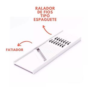 Kit 2 Cortadores E Ralador De Legumes Manual Dupla Face Cozinha O cortador fatiador de legumes possui duas faces com tipos de cortes diferentes. Um lado pode ser Utilizado para cortar em rodelas e o outro lado para desfiar. É possível também ralar queijo, coco, entre outros. Material de excelente qualidade. 2 tipos de corte Praticidade e tecnoligia na hora de preparar seus legumes e alimentos. Perfeito tambem para frios. Acompanha protetor. 21,0x6,5cm