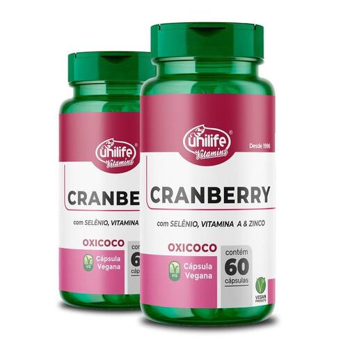 Kit 2 Cranberry 60 cápsulas Unilife O que é o Cranberry da Unilife Cranberry da Unilife como o próprio nome já diz é um produto que tem o fruto cranberry em sua composição, mas além do cranberry possui selênio, vitamina A e zinco, fornecendo diversos benefícios a saúde, entre eles encontramos seu grande potencial de diversas vitaminas proporcionando melhor funcionamento para todo o organismo e o corpo, consumindo o Cranberry da Unilife você pode manter uma ótima qualidade de vida ao sistema imunológico enquanto pode obter , isso ocorre devido aos seus diversos componentes que juntos podem fornecer muitos atrativos. Cranberry é um antioxidante Sim, sua principal finalidade é a ação antioxidante, portanto como o produto da Unilife não possui somente o cranberry em sua composição ele pode fazer um efeito muito além de apenas a limpeza do organismo, juntos todos componentes fazem a manutenção completa do corpo, tornando ele mais forte com relação a imunidade e prevenção de doenças, ou seja o consumo do cranberry da Unilife pode sim ser como um super antioxidante pois além de ações antioxidantes possuem muitos benefícios extras. Propriedades do Cranberry, Selênio, Vitamina A e Zinco. Cranberry: A fruta possui 3 vezes mais vitamina c do que a laranja o que pode proporcionar um fortalecimento enorme para o sistema imunológico, as vitaminas A, E e K também estão presentes na fruta porem suas proporções não tão abundantes igual a vitamina C, alem disso a fruta possui ferro, cálcio, potássio, e fosforo, todos agem de forma coletiva e benéfica ao nosso organismo. Selênio: É um elemento muito difícil de ser encontrado em alimentos convencionais, que o corpo necessita de poucas quantidades dele mas não faz a produção somente pelo organismo, ele tem ação antioxidante muito efetiva, eliminando todos radicais livres do corpo, podendo evitar e combater o câncer e diversas outras doenças. Vitamina A: A vitamina A é responsável pelo crescimento natural do ser humano, sem ela não seria possível realizar divisão celular nem mesmo poderíamos ter desenvolvimento ósseo, então ela é essencial no nosso organismo sem ela não teríamos desenvolvimento nenhum desde o nascimento. Zinco: No organismo ele tem toda função de produzir as reações químicas essenciais no nosso corpo, ele possui cerca de 300 enzimas essenciais para a produção de certos hormônios. Todos elementos são necessários para o bom funcionamento do nosso corpo, a Unilife trouxe no Cranberry uma solução perfeita para melhor qualidade de vida. Quais os benefícios em Utilizar o Cranberry da Unilife Há diversos nutrientes, vitaminas e minerais presentes no Cranberry que são fundamentais para o funcionamento do corpo, juntas além de fazerem suas funções podem fornecerem diversos outros benefícios como estes: Prevenção de infecções, devido a seus diversos nutrientes, o Cranberry da Unilife pode obter resultados sobre prevenção de qualquer infecção. Melhora saúde dos dentes e gengivas, o consumo do produto inibe a produção de bactérias causadoras de caries, melhorando a saúde bucal. Prevenção ao câncer, devido seus componentes antioxidantes pode-se reduzir em até 35% a chance de obter câncer utilizando o cranberry da Unilife em sua dieta. Melhora processo de digestão do organismo, Cranberry em si é rico em fibras que melhora o funcionamento digestivo do organismo. Como utilizar o Cranberry da Unilife A fabricante Unilife recomenda-se o uso de 2 cápsulas diárias após a principal refeição do dia, sugere também que faça o consumo do produto juntamente com líquidos para melhor absorção dos nutrientes pelo organismo.