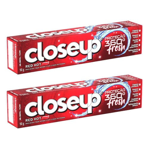 O Kit contém: 2 Creme Dental em Gel Closeup Proteção 360 Fresh Red Hot com 90g cada.
