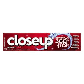 A fórmula exclusiva do creme dental em gel de Closeup Proteção 360 Fresh Menthol Paradise, entrega proteção e cuidado completos, proporcionando hálito incrivelmente refrescante e dentes mais brancos a cada uso. Sua fórmula com flúor e ingredientes de enxaguante bucal com zinco ativo, possuem ação antibac, protegendo contra cáries, placa e ajudando a eliminar até 99% das bactérias causadoras do mau hálito, proporcionando até 12 hora de hálito fresco e duradouro. Limpa profundamente seus dentes para um sorriso branco e radiante a cada uso, graças aos cristais micro-shine presentes em sua fórmula. O sabor Red Hot apresenta notas picantes de cravo combinadas com notas específicas (mentol-wintergreen), proporcionando uma sensação duradoura gelada de frescor.