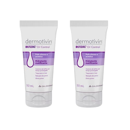 Dermotivin Benzac Oil Control Hidratante Matificante 50ml Pode ser utilizado como primer, antes da maquiagem para melhor fixação e também antes do protetor solar. Sua formulação com textura leve, hidrata sem obstruir os poros e possui agentes que controlam o brilho e deixam a pele com o efeito matificado. Produto não comedogênico. Dermatologicamente testado. Cuidado diário. Benefícios: Hidratante matificante, pele oleosa, pele acneica, efeito primer e redução poros. Uso específico: Pele oleosa a acneica. Modo de Usar: Aplicar generosamente o produto na pele limpa duas vezes ao dia (manhã e noite) ou conforme orientação do seu dermatologista. Precauções e avisos de segurança: Mantenha o produto longe do alcance das crianças. Se ocorrer irritação, interrompa o uso. Em caso de ingestão acidental, procure atendimento médico. Em caso de contato com os olhos, enxágue imediatamente. Conservar em temperatura ambiente e ao abrigo do sol. Uso externo. Principais Características: Controle do brilho por tempo prolongado. Toque seco e leve. Redução dos poros. Efeito primer. Marca: Dermotivin. Linha: Dermotivin Benzac Oil Control. Peso Líquido (Volume): 50ml. Local de Utilização do SKU: Hidratação Facial. (Apresentação / Categoria) do SKU: Hidratante Matificante.