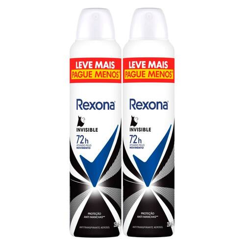 Desodorante Antitranspirante Aerossol Feminino Rexona Invisible 72 horas 250ml • O Desodorante Antitranspirante Aerosol Feminino Rexona Invisible possui nova fórmula: 72 horas de proteção contra a transpiração e o mau odor, ativada pelo movimento • O novo desodorante feminino Rexona responde diretamente ao seu movimento, mantendo você seca, fresca e protegida como nunca • Testado cientificamente e validado por consumidores brasileiros. 84% dos consumidores que experimentaram o produto afirmam que trocariam o seu antitranspirante atual pelo Novo Rexona • A fórmula do Antitranspirante Aerosol Feminino Rexona Invisible é 0% álcool*, e possui tecnologia que protege a sua roupa contra manchas brancas e amarelas. • Agite antes de usar. Aplicar o Desodorante Feminino Rexona Invisible somente nas axilas a não menos de 15 cm da pele • Este desodorante antitranspirante não afeta a camada de ozônio, possui lata em alumínio 100% reciclável e é feito com energia elétrica 100% renovável Mais uma vez Rexona se supera e relança sua linha de desodorantes com uma fórmula inovadora, que combina um novo e exclusivo ativo antitranspirante com a tecnologia de fragrâncias encapsuladas. O resultado? O Desodorante Antitranspirante Aerosol Feminino Rexona Invisible garante 72 horas de proteção ativada pelo seu movimento e muito mais confiança para você encarar qualquer desafio. Com o registro de 16 patentes e mais de 300 testes técnicos, está comprovado que essa nova tecnologia antitranspirante entrega um nível de proteção contra o suor como nenhuma outra proposta regular já entregou antes. A nova e exclusiva fórmula de Rexona Invisible trabalha com um sistema de partículas menores e mais estáveis, que formam uma barreira protetora mais resistente e duradoura contra a transpiração e o mau odor, mantendo você seca, fresca e protegida a cada novo movimento e por muito mais tempo. Este desodorante feminino antitranspirante não afeta a camada de ozônio, possui lata em alumínio 100% reciclável e é feito com energia elétrica 100% renovável. Modo de usar: Agite antes de usar. Aplicar somente nas axilas a não menos de 15 cm da pele. Sua fórmula é 0% álcool*, e possui tecnologia que protege a sua roupa contra manchas brancas e amarelas. Além da nova fórmula, o novo formato de Rexona aerosol 250 ml é mais econômico, onde você leva mais produto e paga menos**. Ele é o formato mais sustentável de Rexona aerosol, com uma embalagem que utiliza 23% menos metal e 41% menos plástico do que a versão de aerossol 150 ml, quando se compara o gasto por tonelada de produto. Por ano, são vendidas muitas toneladas de Rexona aerosol, então essa escolha nos ajuda a dar mais um passo em direção ao que é melhor para o planeta. Por que Rexona não te abandona. *Não contém álcool etílico. **Quando comparado à versão de 150 ml Ean: 7891150081277