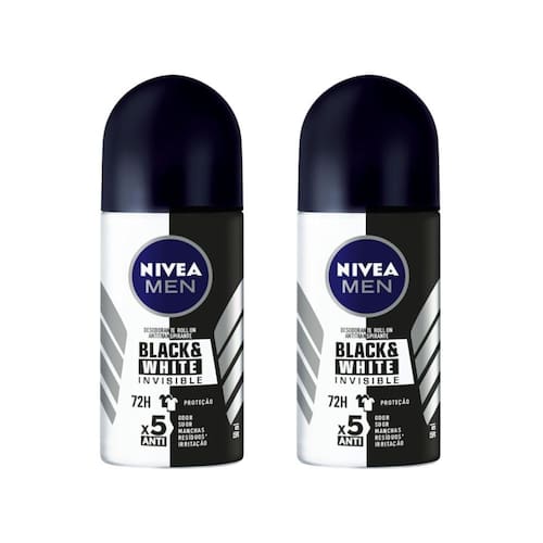 NIVEA MEN Desodorante Roll-on Black & White Invisible autêntico 50ml O que é? NIVEA MEN Desodorante Roll-on Black & White INVISIBLE autêntico é um desodorante roll-on masculino que promove máxima proteção de NIVEA contra o suor, mau odor, manchas, resíduos nas roupas e irritação, além de proteger a pele. Deixa as axilas protegidas, é fácil de aplicar, e possui proteção dermatologicamente testada. Para que serve? NIVEA MEN Desodorante Roll-on Black & White INVISIBLE Clear proporciona a melhor proteção contra manchas e suor. Sua fórmula é 5x anti odor, suor, manchas, resíduos nas roupas e irritação na pele, com proteção prolongada de 72 horas. Evita manchas brancas em roupas pretas e manchas amarelas em roupas brancas. Benefícios e diferenciais: Anti-manchas com proteção de 72 horas A melhor proteção contra manchas e suor Fácil de aplicar Dermatologicamente testado Cuidado completo Modo de usar: Usar somente nas axilas. Espere secar antes de se vestir. Ingredientes: Aqua, Aluminum Chlorohydrate, PPG-15 Stearyl Ether, Steareth-2, Steareth-21, Palmitamidopropyltrimonium Chloride, Propylene Glycol, Tocopherol, Trisodium EDTA, Tetramethyl Acetyloctahydronaphthalenes, Pogostemon Cablin Oil, Linalyl Acetate, Beta-Caryophyllene, Citronellol, Geraniol, Pinene, Parfum. Precauções: Não usar se a pele estiver irritada ou lesionada. Caso ocorra irritação e/ou prurido no local da aplicação, suspender o uso imediatamente e procurar orientação médica. Manter fora do alcance de crianças. Manter o produto com tampa fechada, guardado em local seco, escuro e sob temperatura ambiente.