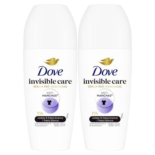 Kit 2 Desodorante Dove Invisible Care Roll-on Antitranspirante Violeta e Frésia Branca 50ml