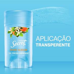 Da Um Check Wow, Voce vai amar!O Desodorante Secret Gel feminino Orange Blossom protege a sua pele contra o suor e o mau cheiro nas axilas deixando-a suave e macia. Com seu formato desodorante em gel, proporciona uma proteção duradoura desde o primeiro uso. Por ser um desodorante em gel invisivel não deixa manchas brancas nem resíduos nas roupas. Além disso, a sua fragrância cítrica, suave e exótica lhe proporcionará uma sensação de frescor durante todo o dia.Esse desodorante antitranspirante em gel brinda uma proteção completa que se adapta à sua rotina, pois, controla o suor provocado pelo calor, pelo estresse e por atividades físicas. Além disso, Secret é uma marca livre de crueldade animal certificada pela PETA. Para usar o desodorante antitranspirante Secret Gel Orange Blossom, remova o selo de segurança, use de 2-3 clicks por axila, e aplique diariamente apenas na região das axilas, não esquecendo de manter o frasco bem fechado após o uso.Desde 1956 Secret apoia as mulheres a demonstrarem o melhor de si, com uma hidratação e proteção contra o suor e odor nas axilas