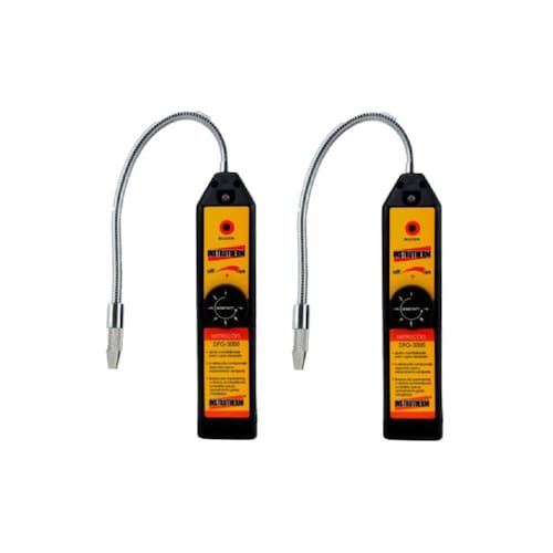 KIT 2 DETECTOR DE FUGA DE GÁS MOD. DFG-3000 PORTÁTIL COM ALARME VISUAL/SONORO DESCRIÇÃO: Incorporado com a tecnologia de detecção de vazamento de gás halogêneo, o DFG-3000 é o novo aparelho da Instrutherm com funções de fácil operação, resistente, pequeno e fácil de ser transportado. CARACTERÍSTICAS Detecta todos os tipos de gases refrigerantes halogêneos. Sensibilidade ajustada a todos os momentos e pode ser ajustada automaticamente para obtenção de melhores resultados. Exibição tricolor da tensão da bateria. Sensor de alta sensibilidade e longa durabilidade. APLICAÇÕES: Equipamento utilizado por técnicos e engenheiros elétricos em assistências técnicas de equipamentos eletrônicos, laboratórios, desenvolvimento de projetos, Escolas técnicas, Testes de componentes eletrônicos, entre outros ESPECIFICAÇÕES TÉCNICAS: Temperatura de operação: 0°C a 52°C (30°F a 125°F) Sensibilidade máxima: 6gr/ano, para todos os gases refrigerantes halogêneos Duração das pilhas: Aproximadamente 50 horas de uso normal Tempo de resposta: Instantâneo Modo de trabalho: Contínuo Comprimento do sensor fixo: 20cm Tempo de aquecimento: 6 segundos Tempo de reajuste: 2 a 10 segundos Alimentação: 4 pilhas de 1,5V DC Dimensões: 229 x 65 x 65mm Peso: 250g ACESSÓRIOS FORNECIDOS: 2 - Ponta sensora 2 - Estojo 2 - Manual de instruções