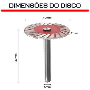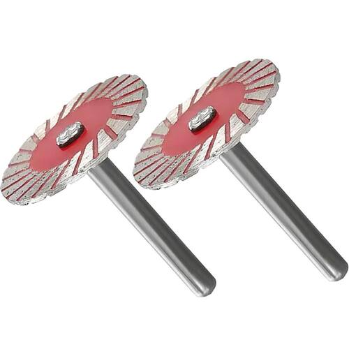 Kit com 2 Discos de Corte Diamantado Turbo 40mm com Haste de 6mm para Furadeira - Marca: Dremax - Jogo exclusivo com 2 discos - Diâmetro: 40mm - Haste: 6mm - Indicado para corte e escultura em para granito, mármore, concreto, pedras decorativas, alvenaria e telhas de fibrocimento - Amplamente utilizado em atividades como corte e gravação, possuindo alta dureza e resistência ao desgaste - Com aresta corte afiada para cortar facilmente vários tipos pedras e obter gravação alta precisão - Para uso em furadeiras de todas as marcas - Fabricado com material resistente e de qualidade, oferecendo durabilidade e maior vida útil ao produto - Corte a seco ou refrigerado corte com água aumenta a vida útil do material - : 90 dias contra defeitos de fabricação Marca: Dremax