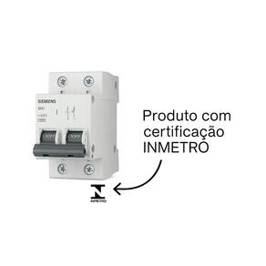Kit 2 Disjuntores Bipolar 2P Curva B 10A Siemens Kit 2 Disjuntores Bipolar 2P Curva B 10A Siemens O Kit com 2 Disjuntores Bipolares 2P Curva B 10A da Siemens é a escolha perfeita para quem busca segurança e eficiência em sistemas elétricos. Ideal para proteger circuitos contra sobrecargas e curtos-circuitos, este kit é essencial para instalações residenciais e comerciais que exigem confiabilidade e alto desempenho. Benefícios e Características Principais: Proteção Eficaz: Garante segurança contra sobrecargas e curtos-circuitos, protegendo seu ambiente. Curva B: Ideal para aplicações residenciais e comerciais leves, oferecendo resposta rápida a falhas elétricas. Design Compacto: Facilita a instalação em quadros de distribuição padrão, otimizando o espaço. Qualidade Siemens: Fabricado por uma marca líder em tecnologia e inovação no setor elétrico. Especificações Técnicas: Corrente Nominal: 10A Tensão Nominal: 240/415V AC Capacidade de Interrupção: 6kA Tipo de Montagem: Trilho DIN Temperatura de Operação: -5C a +40C Itens Inclusos e : 2 Disjuntores Bipolares 2P Curva B 10A Siemens Manual de Instruções de 3 meses contra defeitos de fabricação Informações Adicionais: Imagens meramente ilustrativas. Adquira já o Kit 2 Disjuntores Bipolares 2P Curva B 10A Siemens e garanta a segurança e eficiência do seu sistema elétrico Marca: Não Informado