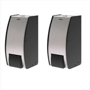 Garantia: 90 dias / Peso total: 1,66kg / Cor predominante: preto / Referência: 7794464325221; Dimensões de cada dispenser: 12cm (C) x 12,5cm (L) x 27cm (A); Capacidade: 800ml cada; Acionamento: manual; Abastecimento: sabonete líquido ou álcool em gel; Trava: com sistema por chave; Incluso: chave, parafusos e buchas. Conteúdo: 2 dispensers porta sabonete/álcool gel. Materiais: aço inox escovado e polipropileno.