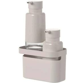 Garantia: 90 dias / Peso: 0,488kg / Cor predominante: bege / Referência: CDM700BGF Dimensões de cada dispenser: 7cm (C) x 7cm (L) x 19cm (A); Dimensões do suporte organizador: 18cm (C) x 10,8cm (L) x 12cm (A); Capacidade de cada dispenser: 500ml; Acabamento: brilhoso; Conteúdo: 2 dispenser para sabão líquido e 1 suporte organizador; Material: poliestireno e polipropileno.