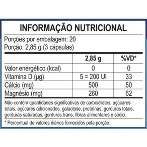 Dolomita em pó, vitamina D3 colecalciferol . Cápsula: gelatina vegetal e água.