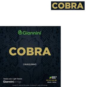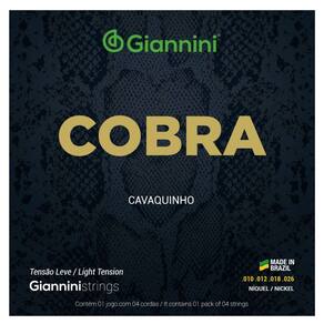 Kit 2 Encordoamento Cavaquinho Giannini Cobra GESCL Níckel .010 Leve A série Cobra apresenta toda a versalidade dos encordoamentos Giannini. O encordoamento para cavaquinho Giannini Cobra GESCL é indicado para músicos que gostam de cordas com uma pegada mais leve. NíquelO encordoamento Cobra GESCP possui um núcleo de aço revestido de níquel, o quê garante uma alta resistência à oxidação e corrosão. Especificações Fabricação: BrasilAlma: AçoRevestimento: NíquelAcabamento: BolinhaComprimento de escala: 340 mm / 13 3/8?Inch. 0.010; 0.012; 0.018; 0.026*Imagens Ilustrativas* *Garantia: 3 Meses*
