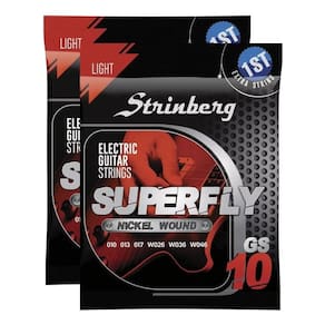 Kit 2 Encordoamento Strinberg Para Guitarra GS10 - 6 CordasO Kit 2 Encordoamentos Strinberg para Guitarra GS10 de 6 cordas é a escolha perfeita para elevar o desempenho da sua guitarra. Com qualidade e durabilidade excepcionais, esses encordoamentos proporcionam um som claro e vibrante, permitindo que você explore todo o potencial do seu instrumento. Seja para tocar acordes encorpados ou solos expressivos, o Kit 2 Encordoamentos Strinberg GS10 garante uma resposta precisa e um tom consistente. Renove o som da sua guitarra e adicione um toque profissional às suas apresentações com esses encordoamentos confiáveis e de alta qualidade.Especificações Técnicas:• Modelo: GS-10• Espessuras: 1º - .010 / 2º - .013 / 3º - .017 / 4º - .026 / 5º - .036 / 6º - .046• Revestimento de bordões: Níquel.Conteúdo da Embalagem:• Kit 2 Encordoamento Strinberg Para Guitarra GS10 - 6 Cordas• Manual e Certificado de GarantiaImportante:• Garantia de 90 Dias.• Valor Kit.
