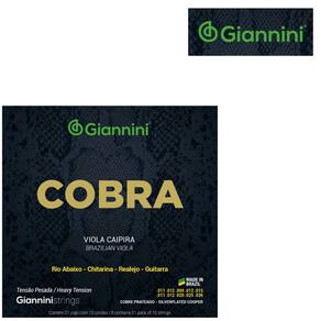 A série Cobra apresenta toda a versalidade dos encordoamentos Giannini. O encordoamento para viola Giannini Cobra GESVP é feito com Cobre prateado e é indicado para músicos que gostam de cordas com uma pegada mais pesada.