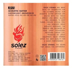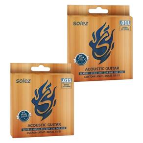 Kit 2 Encordoamento Violão Aço Solez .011 Bronze 85/15