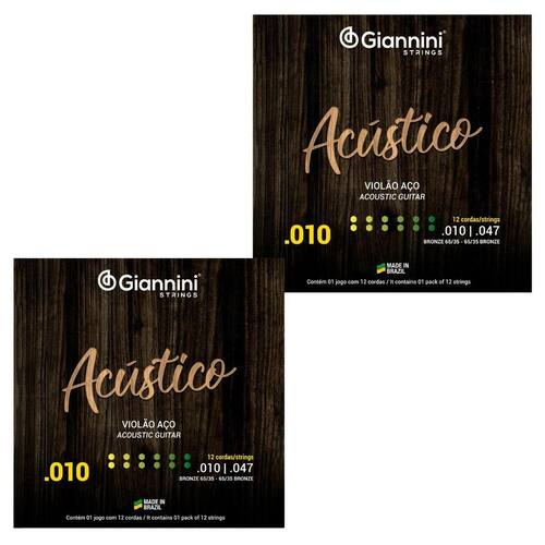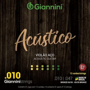 Kit 2 Encordoamento Violão Giannini Acústico 65/35 0.10 12 cordas Descrição: O Encordoamento para Violão Giannini Acústico 65/35 0.10 para 12 Cordas é uma escolha excepcional para músicos que buscam um timbre brilhante e equilibrado, combinado com a durabilidade confiável que a Giannini proporciona. Projetado para atender às exigências dos violões de 12 cordas, este encordoamento oferece uma sonoridade envolvente e uma experiência de tocar agradável. Principais Características: Calibre 0.10: As cordas têm um calibre equilibrado de 0.10, proporcionando uma combinação precisa de resistência e tocabilidade. Esse calibre é ideal para violões de 12 cordas, oferecendo uma resposta equilibrada e facilitando a execução. 65/35 Bronze: Construídas com a liga de bronze 65/35, essas cordas proporcionam um timbre distintivo e balanceado. O bronze 65/35 oferece uma resposta tonal quente e brilhante, realçando as características sonoras únicas dos violões de 12 cordas. Durabilidade Confiável: Projetadas para resistir ao desgaste constante do toque e da vibração, essas cordas Giannini oferecem durabilidade confiável. Isso significa que você pode contar com um desempenho consistente ao longo do tempo. Projeção Sonora Aprimorada: O design cuidadoso dessas cordas visa melhorar a projeção sonora, permitindo que o som do violão de 12 cordas seja ouvido de maneira clara e definida. A projeção sonora aprimorada contribui para uma experiência auditiva envolvente. Sonoridade Encorpada: Ao utilizar um encordoamento projetado especificamente para violões de 12 cordas, você obtém uma sonoridade encorpada e rica em harmônicos. Cada corda contribui para a criação de um som completo e envolvente que caracteriza esse tipo de instrumento. Versatilidade Musical: Adequadas para uma ampla variedade de estilos musicais, essas cordas oferecem versatilidade para músicos que exploram diferentes gêneros em seus violões de 12 cordas. Construção de Alta Qualidade: Fabricadas com atenção aos detalhes e elevados padrões de qualidade, as cordas Giannini para violão de 12 cordas são projetadas para resistir às demandas do uso regular, mantendo a integridade tonal. O Encordoamento para Violão Giannini Acústico 65/35 0.10 para 12 Cordas é uma escolha confiável para músicos que desejam aproveitar ao máximo a sonoridade rica e envolvente de seus violões de 12 cordas. Seja você um entusiasta ou um músico , essas cordas oferecerão uma experiência musical gratificante e inspiradora. Sobre nossa loja: Com muito orgulho e paixão pela música, a E Musical tem o prazer de servir desde o ano de 2009. Durante esses anos, nos dedicamos incansavelmente a fornecer uma ampla gama de instrumentos musicais, equipamentos de áudio, acessórios e serviços de qualidade excepcional para músicos de todos os níveis e estilos. Lojaemmusical Jacareí SP Marca: Não Informado