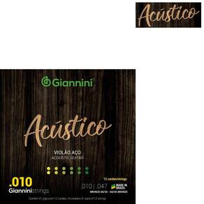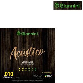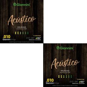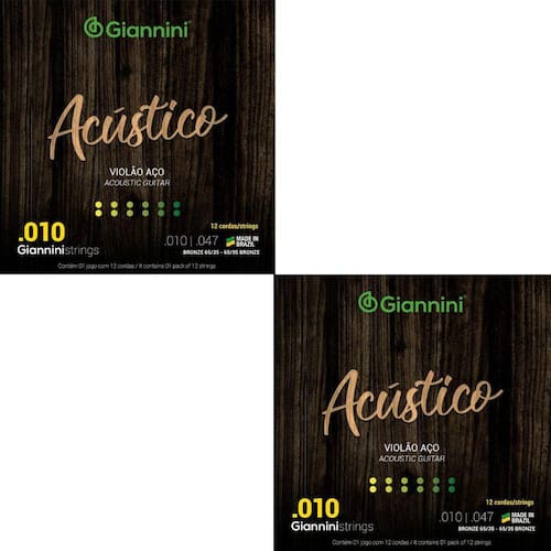 Kit 2 Encordoamento Violão Giannini Acústico GESWA12 Bronze 65/35 0.010"