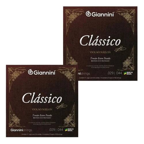 Kit 2 Encordoamento Violão Nylon Giannini Clássico Extra Pesada