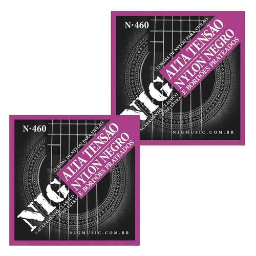 Kit 2 Encordoamento Violão Nylon NIG Tensão Alta Preto Prateado N460
